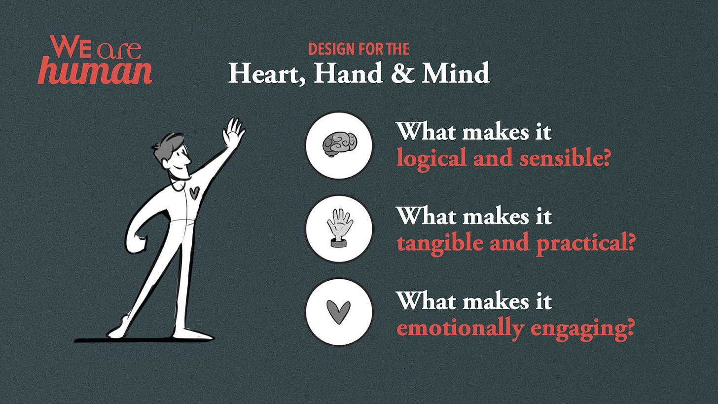 To do this, Kahoot!’s team used a framework developed by We Are Human. You need to think about designing for the heart, hand and mind. Think about what makes your behaviour: