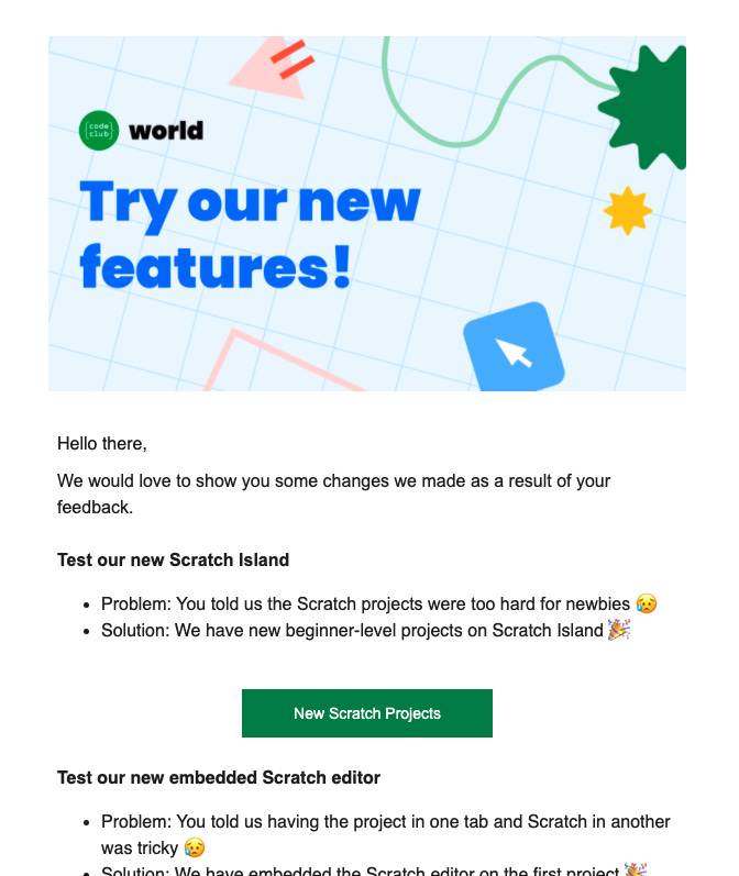 But in March 2020, as the UK went into lock-down, Code Club came to an abrupt stop. Suddenly they stopped having product-market fit. “The number of children we were able to reach massively dropped, almost overnight,” remembers Laura, “And we had no direct way to reach the young people to support them to continue their coding at home.”