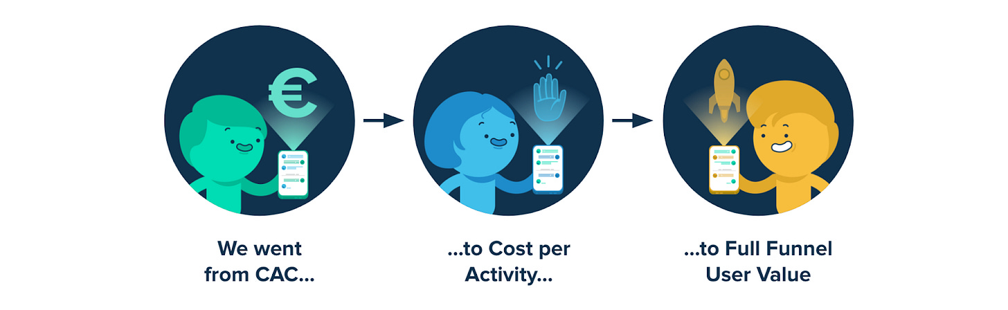 “But the problem with all these metrics is that they don't really represent the full user value. Is it enough to decide where I should spend my money? We decided that it's not because it's a very early funnel metric.”