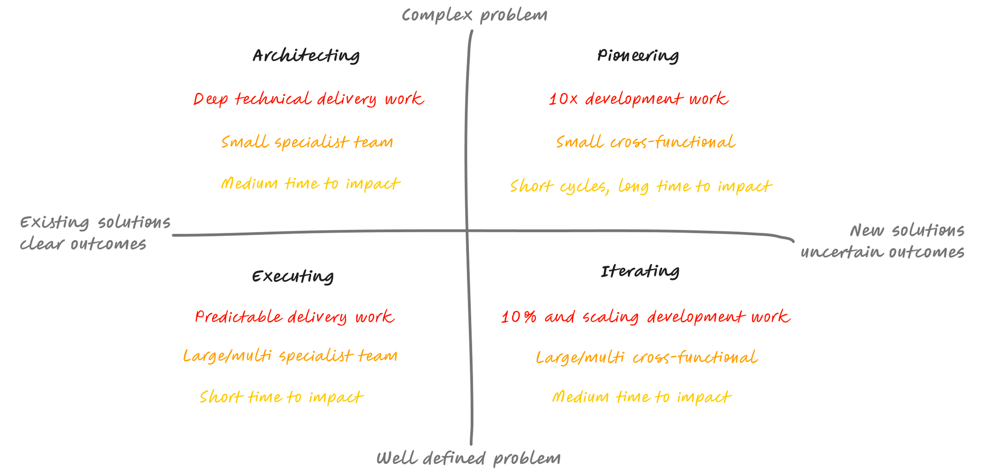 If the kind of work youâre doing is on the right hand side, then a cross-functional team is likely to beneficial. As is product thinking.