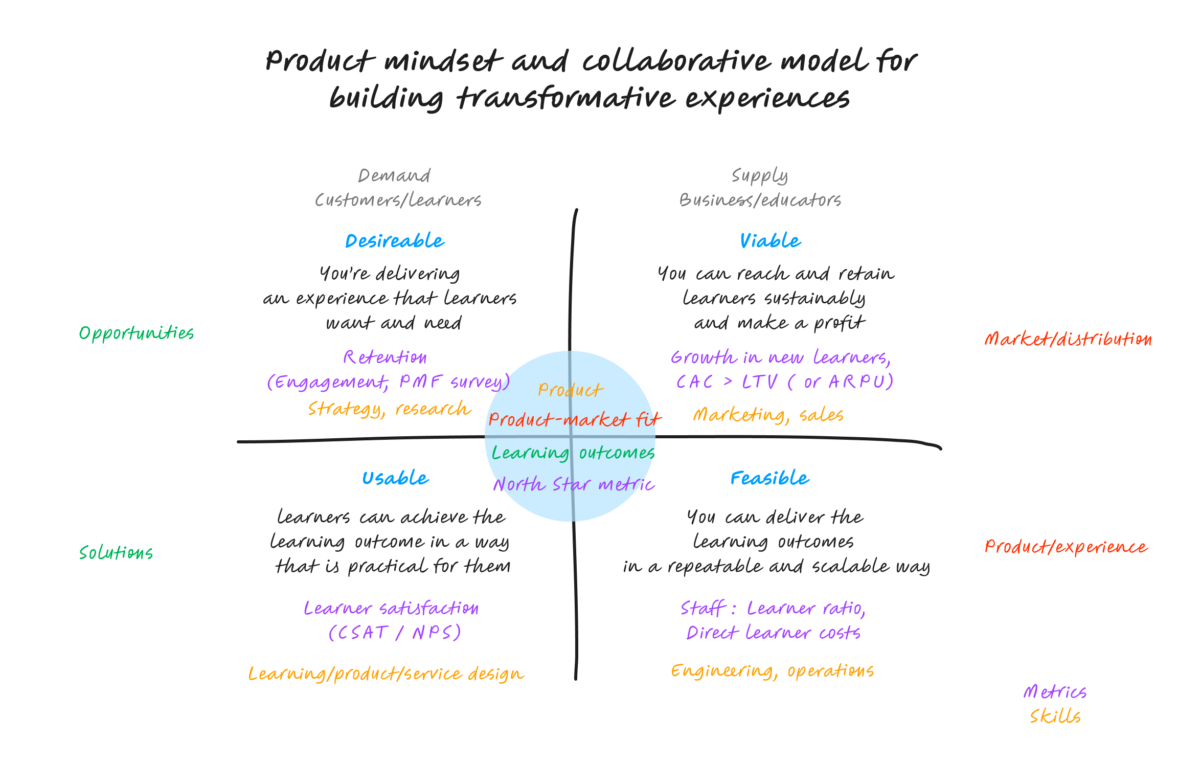 So far we have covered product mindset, product-market fit, product discovery and cross-functional product teams and explored how these ideas apply to learning products.
