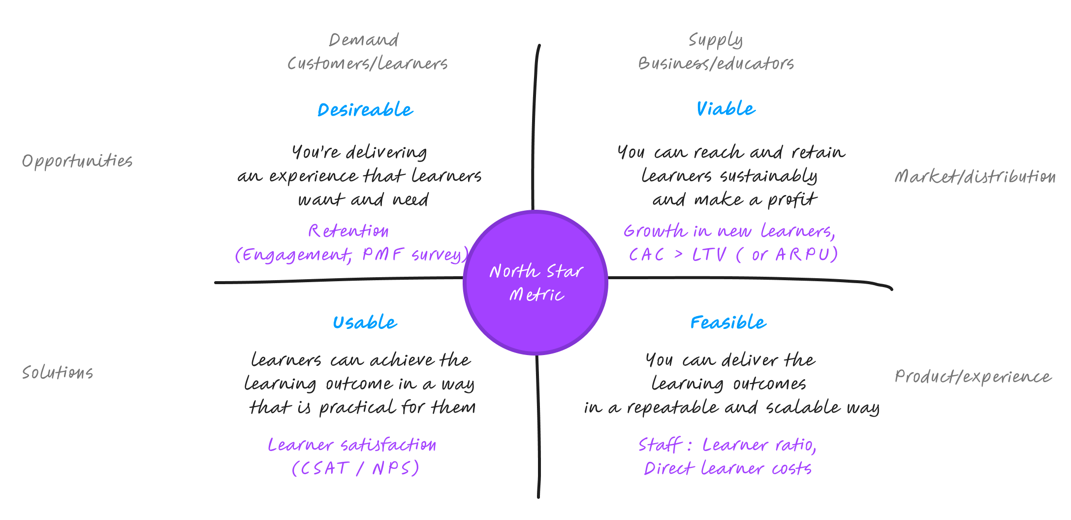 Explore viability by looking at growth in learners and keeping Customer Acquisition Costs well below your Lifetime or Annual Revenue per Learner